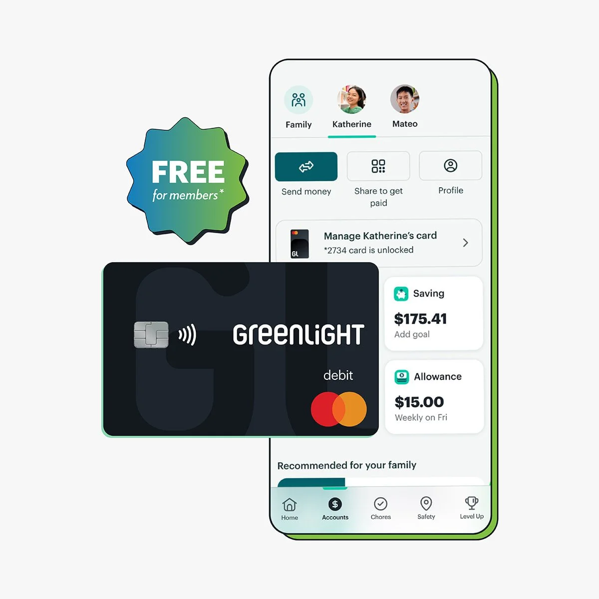 Enjoy Greenlight’s money app and debit card for free*
